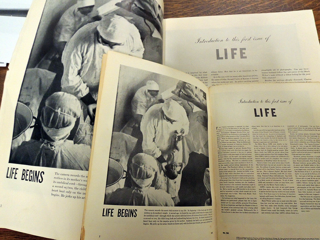 El texto que podía leerse anunciando el nuevo formato de la revista es el siguiente: «Esta semana, los suscriptores inaugurales y los compradores en quioscos tuvieron su primer vistazo a Life , la nueva revista semanal de imágenes publicada por Time Inc. La promoción preliminar había prometido que Life ofrecería “el paquete de fotografías más grande y mejor que sea posible producir a un precio popular.” Por 10 centavos, los primeros lectores podían juzgar cómo la nueva revista había cumplido con estas especificaciones mientras hojeaban las 96 grandes páginas (de 14 pulgadas por 10⅝ pulgadas) con las que Life comenzó su carrera fotográfica.» Creo que es una buena descripción de lo que pretendía abarcar la nueva publicación.
